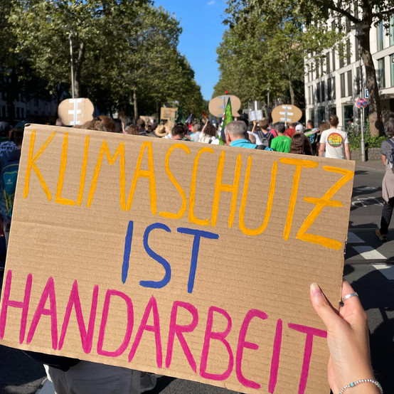 Wenn ich von der Klimakrise erzähle, erzähle ich aber auch von Euch. Von den Menschen, die die Straßen füllen, weil sie sich nicht länger mit unzureichenden Maßnahmen gegen die Klimakrise zufriedengeben. Von den Menschen, die Solidarität zeigen. Ich erzähle von den Menschen, die die Hoffnung nicht aufgeben, die sich hoffnungssuchend umschauen, an die Hand nehmen und gemeinsam kollektiv für eine bessere Welt kämpfen. Das sind wir!